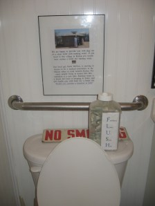 The best “you can use our toilet but” moments of the whole trip. New Harmony didn’t miss a trick. If the print is too small, this is asking for donations to a local girl’s upcoming mission trip to Kenya to provide clean water, “something we’re giving you for free here!” The jar was stuffed.