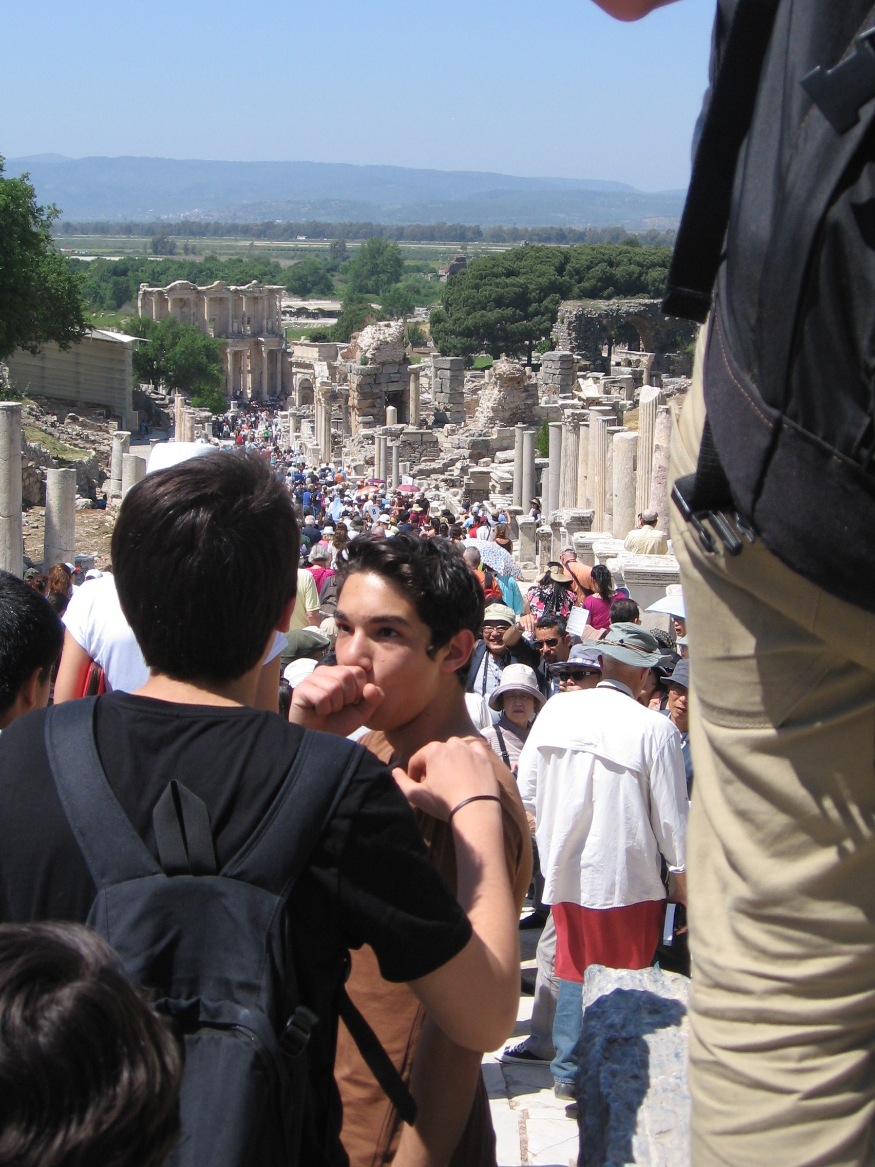 While Ephesus is crowded at any time, April 25 is National Children’s Day in Turkey; we saw children in every conceivable kind of school uniform, being pulled through the ruins by harassed-looking teachers. It doesn’t matter if she’s wearing full-on hijab or a track suit; you can tell a teacher on a field trip from every other person in humanity by that look of cynical dedication on her face. Here’s to you, ladies and gentlemen of the educating world.