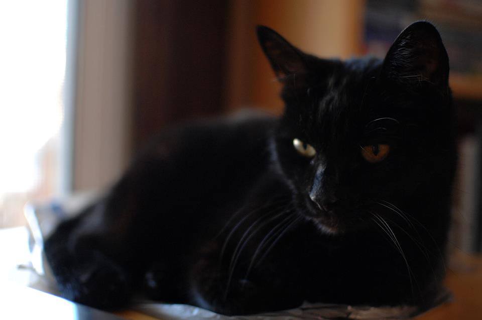 She came to us as a tiny kitten, just four weeks old. One of her earliest acts was exploring the backyard in Rosyth, Scotland, where she saw off a big bruiser of a cat six times her size. (He’d had the audacity to use the yard as a shortcut to the field beyond.) “Now would be a good time to be magnanimous,” I shouted as the confused older cat hunkered down to watch Valkyttie–all of six inches long–arch her back and hiss like a little black powder puff. But she held her ground and established her territory.