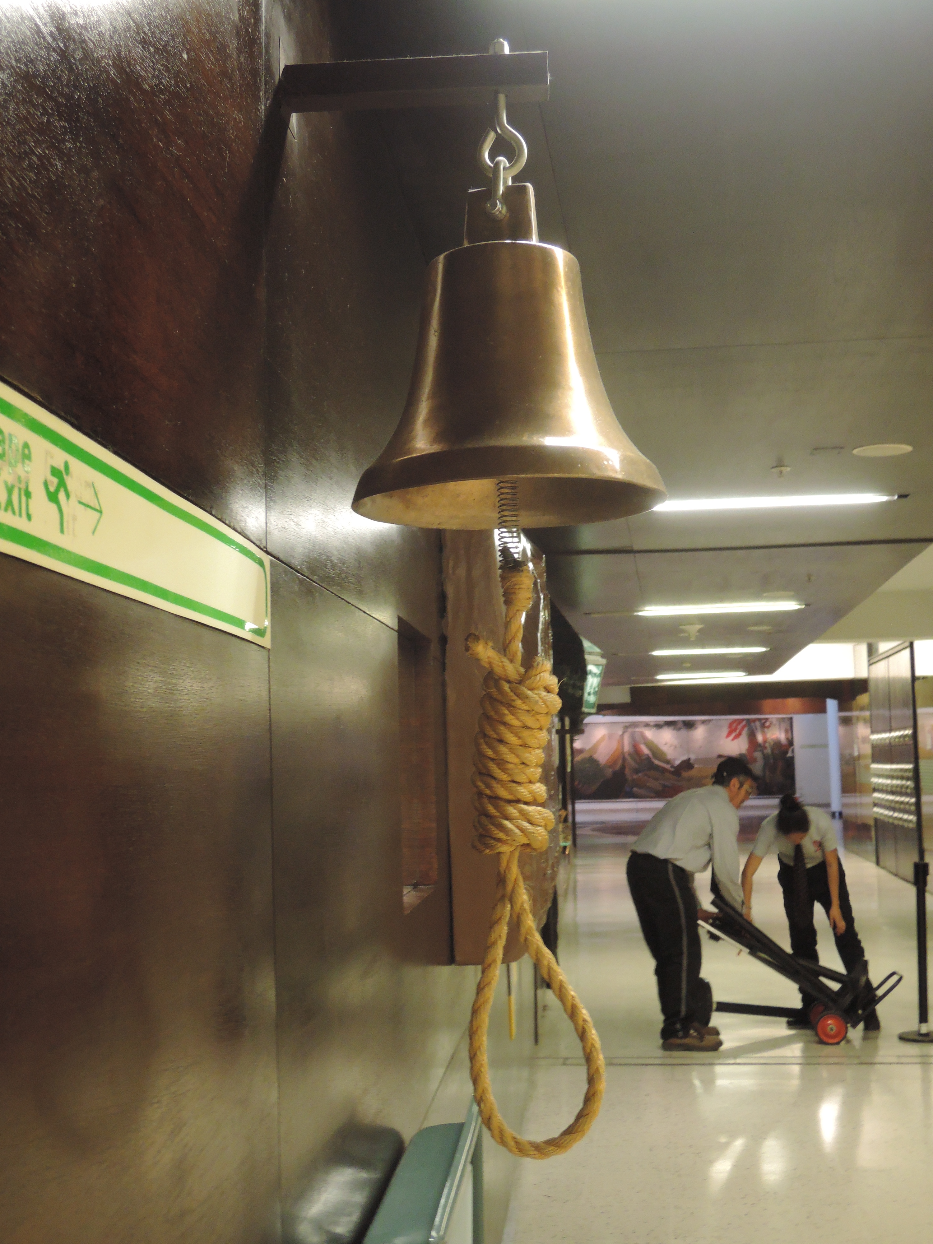 But then our guides Carrie and Flores led us down to the main auditorium. The building was in active use when Pinochet’s coup descended and things in Chile changed rapidly–including the ability to express oneself. When it first opened, the bronze door handles on the Cultural Center displayed fists pumping toward the sky, an artistic expression of victory. Pinochet had them flipped over, so that they looked like the fists of someone being handcuffed.