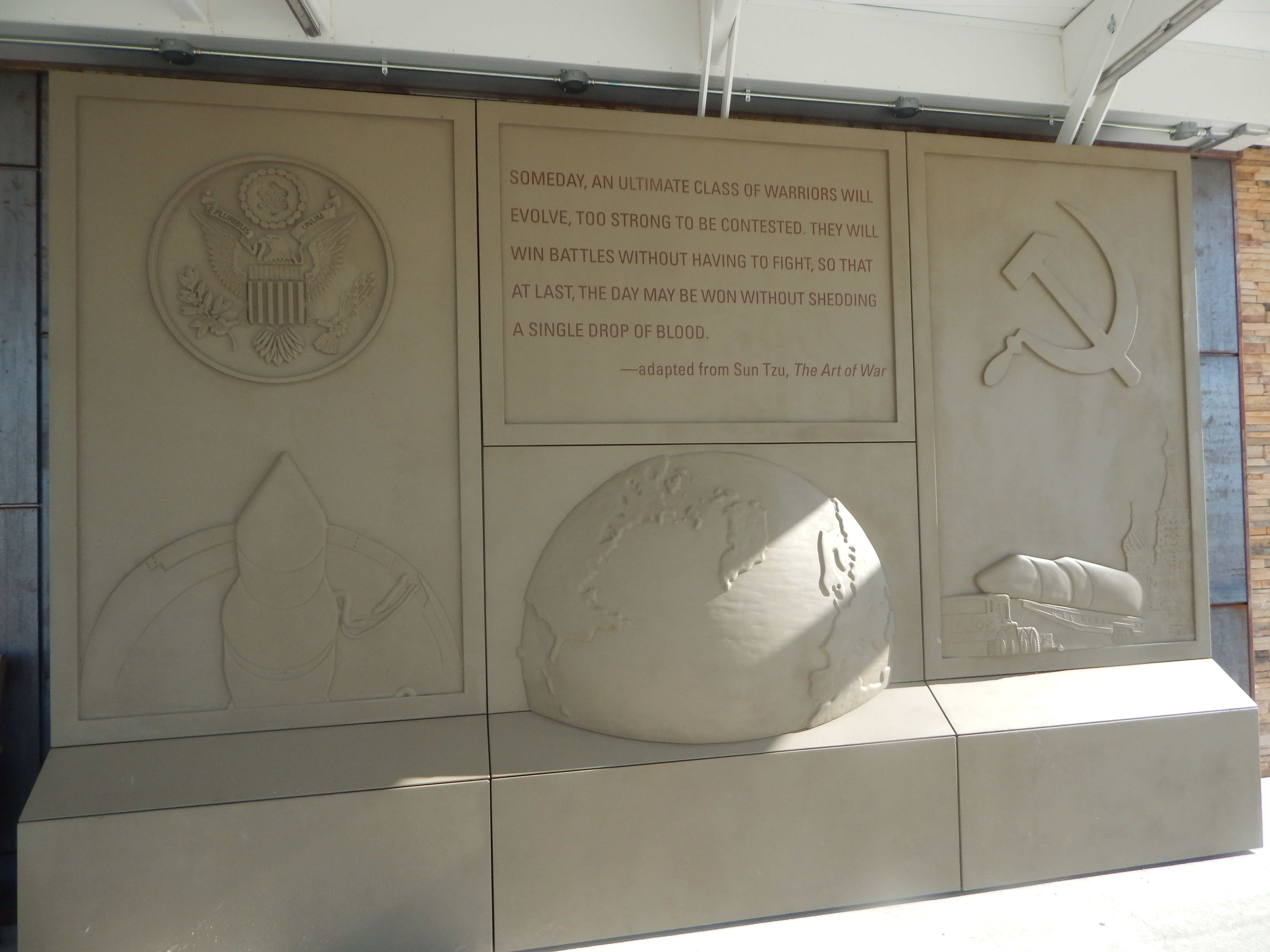 but the exhibit that got to me the most, before the visitor’s book that invited comments, was the museum’s interpretation of the Kruschev speech “We will bury you.” The descriptive panel said Americans interpreted Kruschev as meaning they would push the button, when what he had meant was Communism would overtake Capitalism. And how useful that was for funding the Cold War’s stockpiling and everything that came with it. It made me think how that isn’t so different from now, when fear drives so much of how we view ourselves and the world, except instead of Communist it’s Muslim. Or any other villain du jour. History recycles. Unfortunately, it doesn’t seem to be upcycling, just spiraling into repeating itself. When did we become so easy to manipulate?