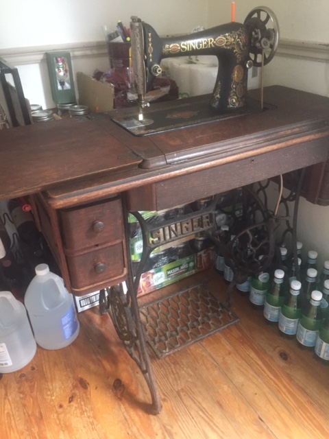 Thanks to our good friend Randy’s sister Linda, we were given an old Singer treadle sewing machine a while back. A beautiful piece of furniture but of little practical use, it sat in our garage until Wendy worked her charms. I set about getting this foot-powered treadle machine going again a couple of weeks ago. Friends asked if we were prepping; no. It really is just such a pretty piece of furniture, and Wendy was very persuasive….