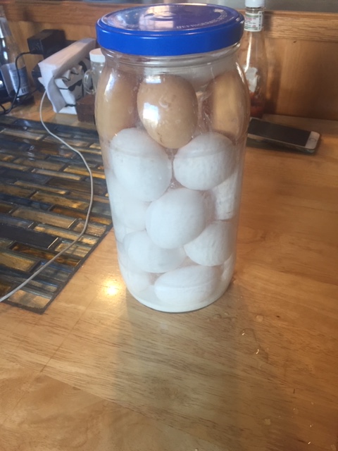 So we now have two large containers of glassed eggs sitting on the counter, and we are still enjoying three-egg days.