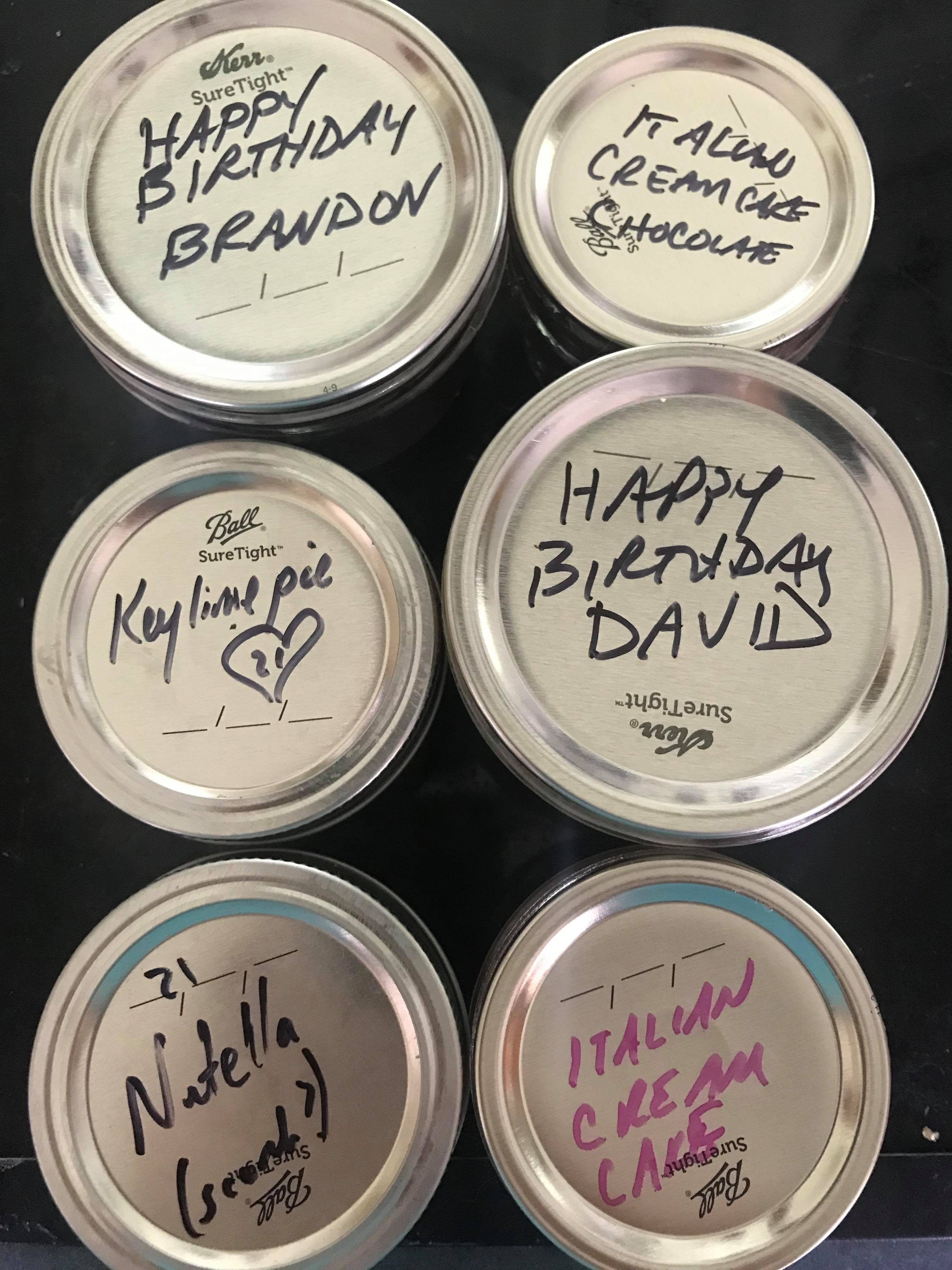 Throughout the pandemic, we had weekly Zoom meetings, sometimes joined by friends Barbara and Oliver in Britain. But it’s not the same as face to face. Since we missed several birthdays, plus the Thanksgiving Holiday we often tend to spend together at a resort after family duties are accomplished, I made each of them their favorite desserts as presents for the in-between ones. Because Susan is also a cancer survivor and she and David are on restrictive diets, I made them in little individual jars of 4 ounces, so each is a personal one-serving, shelf-stable and ready to eat on demand.