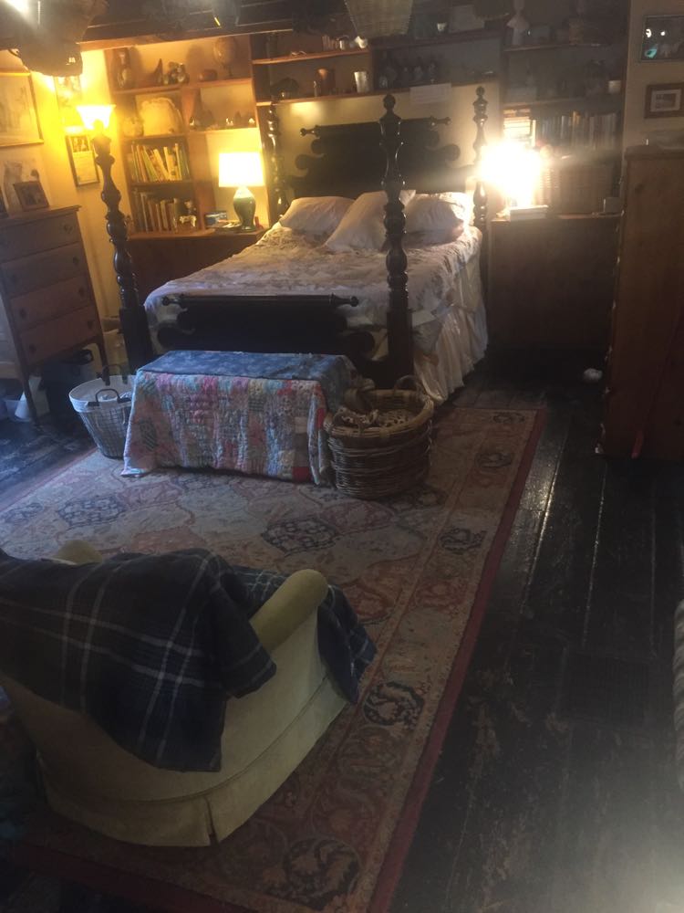 For a variety of reasons, we decided to make the ‘ceilidh’ room our bedroom and that meant moving our big old and bulky bed down our narrow staircase. Luckily two good (and young and fit) friends were staying over the weekend. So following a musical evening in the ceilidh room on Saturday, Sunday was spent maneuvering everything down. Although we were able to get the mattress bent enough to push and pull it down the stair, the headboard and footboard had to go out to a small upstairs landing and be lowered down over the rail. Something we could never have done on our own.