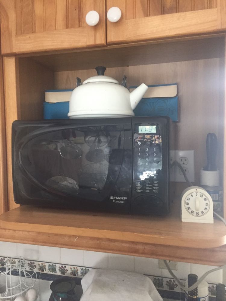 Hhhmmm – so I cleaned the original microwave thoroughly and got it up on the shelf and plugged it into the alternative outlet and bingo! It lit up – –