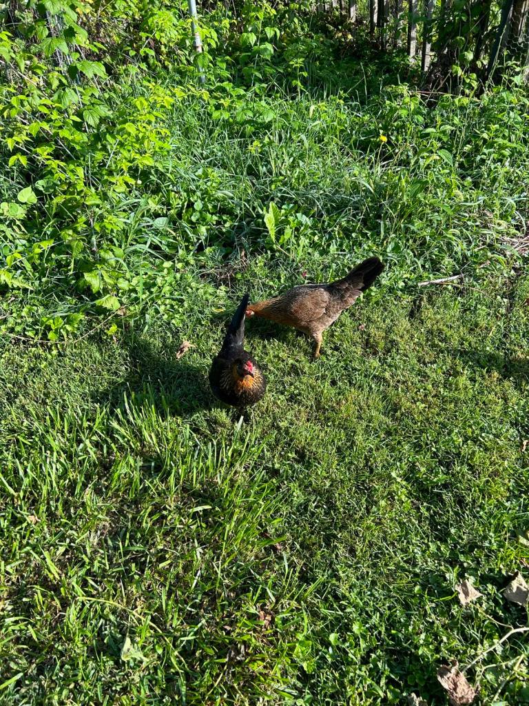 Then Goldie (the wee brown one) disappeared. Five days, she was gone, and Jack and I figured that was it…she’d been eaten by something that likes chicken more than egg.