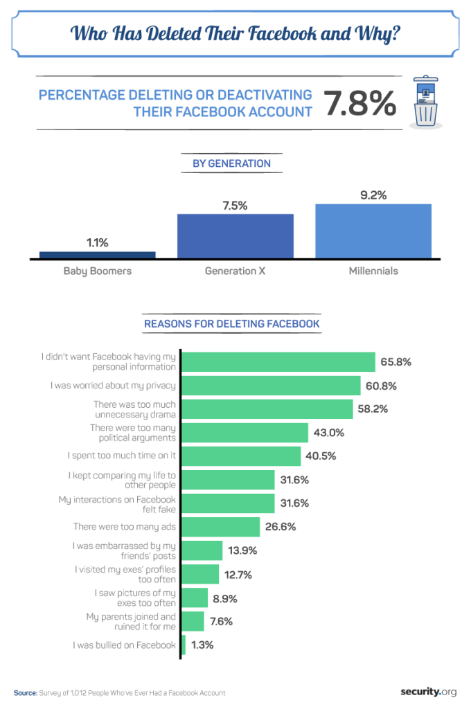 - Data crunchers have investigated who is leaving FB and why in some depth over the past few years. I am actually in the second-largest age category leaving. Leading the leave wave are millennials. Gen X runs a fairly distance second. Why they are dropping the big F falls into several categories.