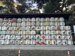 We started at the Meiji Shrine, named for the emperor of the 1900s. He and his wife are enshrined there. They were very popular, being considered smart about modernizing while retaining culture. The shrine is down at the end of a subway line, 18 stops from where we were staying. But the Meiji Shrine and the Meiji Baseball stadium were just one slipping finger away from each other in Google Maps, so we disembarked and walked the last two miles.