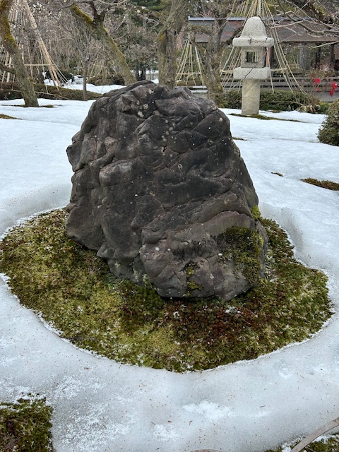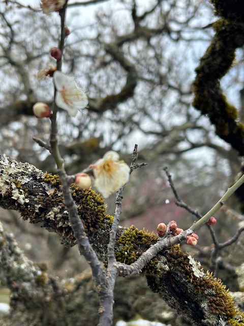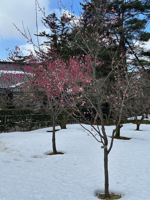 Plum trees blossom in snow. I did not know this until I saw them with my own phone camera! The gardens are famous for that era of rapid transition in Japan, when feudal lords (samurai) were on the way out and modern Japan as a power to be reckoned with in manufacturing and goods was hoving into view.