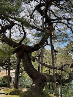 The gardens are named Roku because of Japan’s six prized landscaping elements incorporated in their design: open spaces, panoramic views, solitude options, art made by humans, ancientness, and lots of water features. One of Japan’s oldest trees (a pine) sits in the garden. Amelia’s aunt sat on the tree seventy years ago to take her bridal picture, but it’s roped off now. One too many tourists, probably.