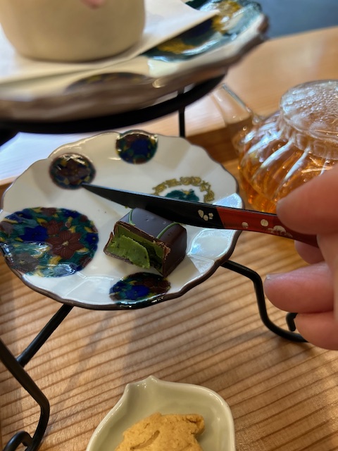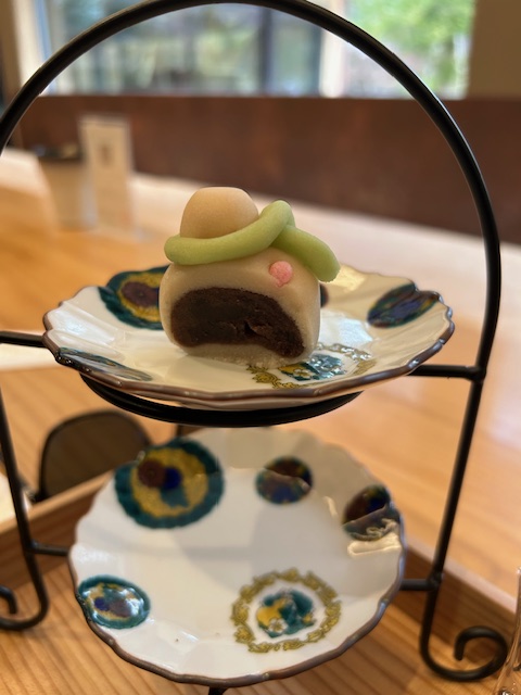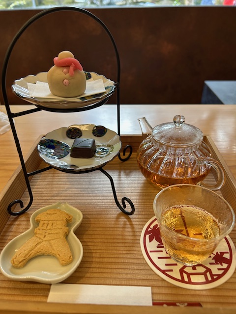 Amelia sat in blissful silence, munching her bean paste snowman, matcha chocolate, and almond lantern cookie in deep contemplation. She’s planning her garden back home. I bit the head of my snowman and watched a fat raven work the crowd outside the window.