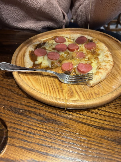 The neighborhood onsen was sublime. The gardens were spiritual. So what better ending to such a meaningful day could there be than an Irish pub in the heart of Kanazawa at happy hour? Amelia had a curry pizza. I had sausages. The Olympics were on a massive screen TV, showing the Asian figure skaters. A good time was had by all.