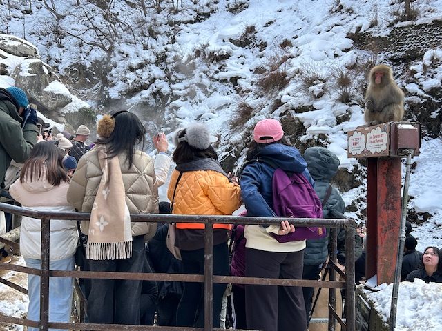 Tokyo is the safest city in the world. The Jigokudani monkey park, not so much. International tourists come from all over the world, and once they realize that from Nagaro station you have to get a specific and highly-sought-after bus, and once you get off that bus it’s a 2 mile walk straight up an incline, they get pissy. You’re going to hear a lot of swear words in a multiplicity of languages and people stop moving aside on the path.