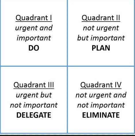 A member of the senior management introduced me to a time management tool that has stuck with me ever since. I later discovered it’s called ‘The Eisenhower Matrix’ and many variations have evolved over the years. The closest to the one I used is pictured above.