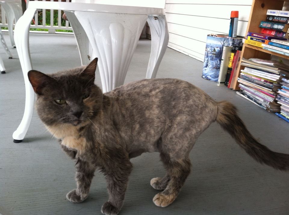 Fortunately, Kelley’s son Asher was on hand. Being about 4’3″ and 65 pounds, plus a natural cat whisperer, he quickly found the cats hiding in their respective corners, explained that nothing bad was going to happen, and soon had them in arms. The ladies took their shots like champs, and I grabbed Beth’s phone and took a few shots, too. Heh heh heh.