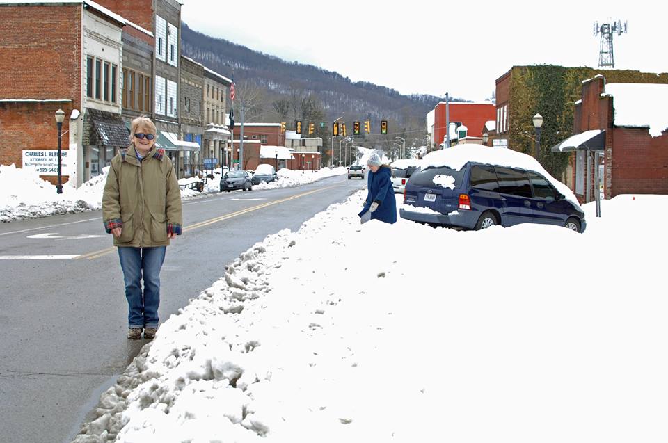 Small towns are amazing places. Kelley and I spent most of yesterday afternoon trying to find houses people had called in to the café, where those who couldn’t get out would appreciate hot soup and a sandwich. Nobody in a small town uses numeric addresses. (“Turn where the old Family Dollar used to be” one lady told me.) Kelley was donated the money to make two vats of soup after she started doing this on her own the day before, and walking it to houses in the neighborhood because no one could drive. With the aid of our 4WD supertruck, we made it all the way to East Stone Gap and back, trudging through sludge and up roads we didn’t know existed. And everywhere we were met with smiling people with snow shovels who helped us get through, drivers who waited patiently in their cars for us to back up after realizing what we were doing, a guy who stuck his head out the window and said, “Y’all need any money to help do this?” and other kind souls.