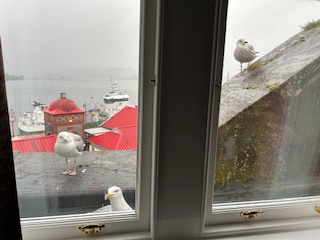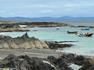 And we got a text message from Barbara, musician and manager with the band IONA. (So maybe she felt a vested interest.) About a decade before, IONA had been featured at the Celtic Festival Jack and I organized in Big Stone Gap, where we ran a bookstore. At the after-party in our shop, their bass player Chuck adopted one of our kittens. He watched the dominant bully cat cuff the little orange butterball off a perch twice, and admired his pluck. Then the kitten walked across a sea of legs to sit on Chuck’s shoe. He had been selected.