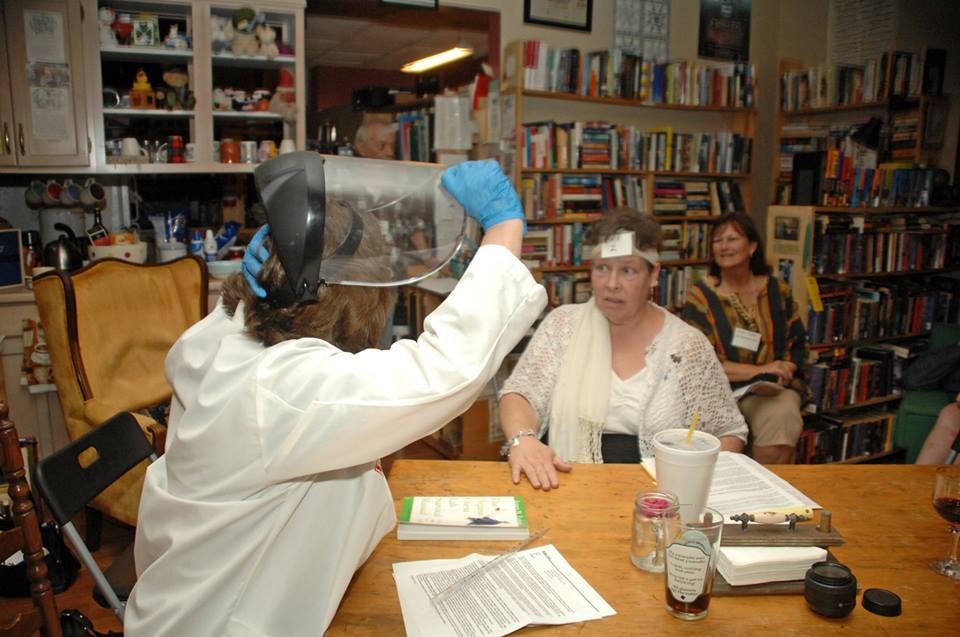 Last night was one of our famous semi-annual murder mysteries here in the bookstore. We use them to blow off steam and laugh at the events of the past six months. (They are less about whodunnit than letsfunit.)