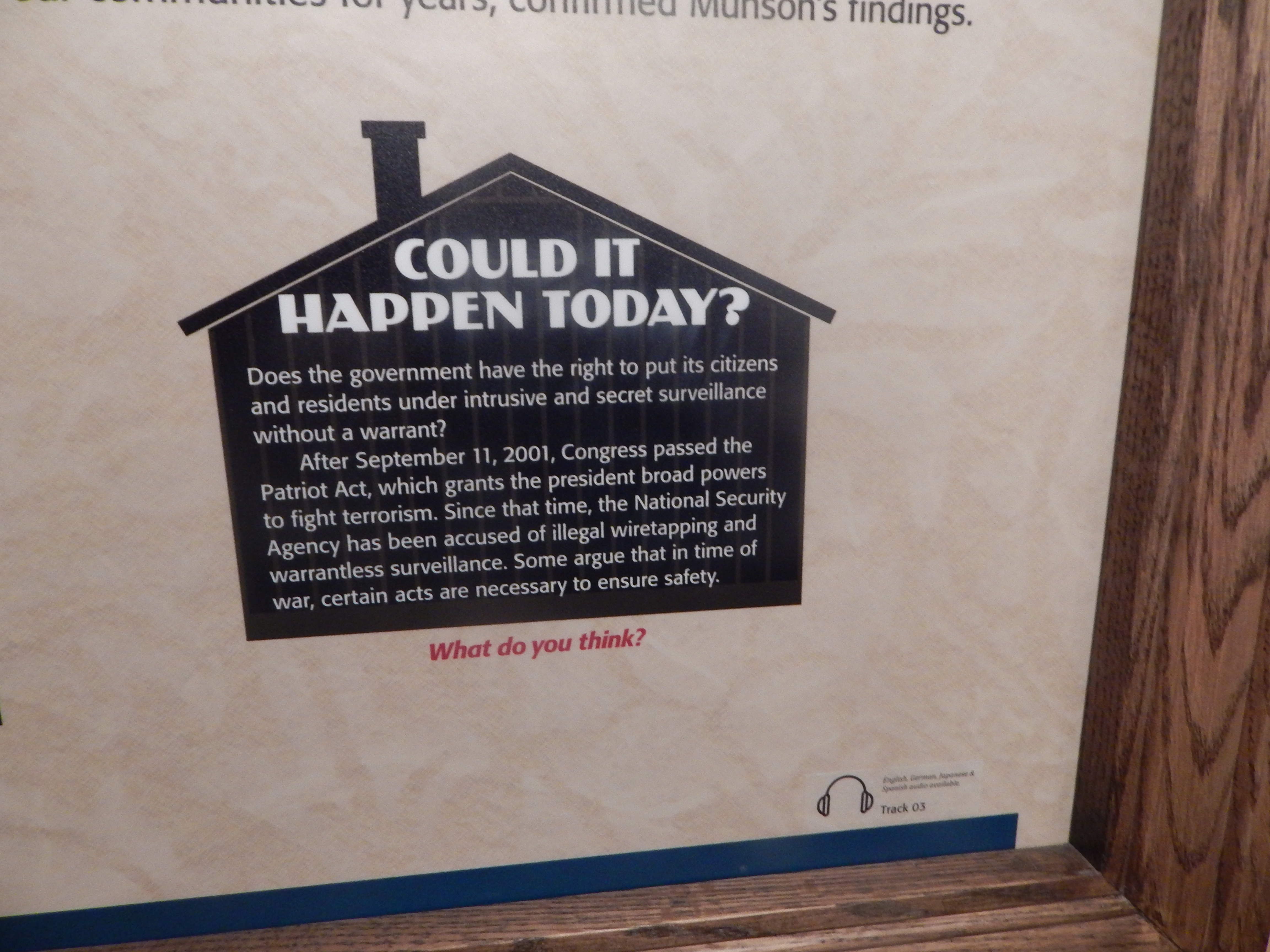I don’t do politics publicly, so I’m only going to say that reading the information, written by people who were in the camp, was surreal in today’s American political climate of economic fear hidden behind anything we can think of to hide it behind. Creepy is a childish word. The edge of terror? Sick to the stomach? Too much drama. Surreal will have to do.