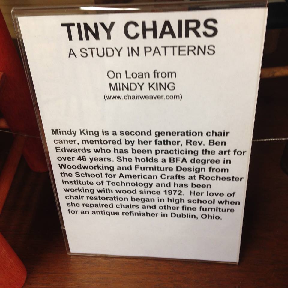 Brandy, the owner, showed me the antique chairs, the unusual caning someone had done to a ladder back rocker, and a few other things that set my heart racing, before we shook hands and said goodbye. She’s going to try and make a trip to the bookstore sometime next year, and if she does we’ll try to set up a special event, something along the lines of “Intro to chair caning for normal people.”