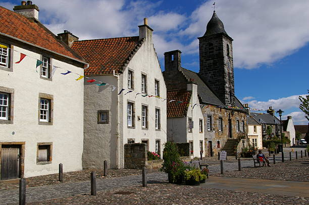 But she was resourceful and talented and made a plan. She had trained at the famed Slade School of Art in London, specializing in fiber art and water color painting. So she and the kids moved to a rented house in the small town of Culross (pronounced koorus) in Fife; the town is under protection by the Scottish Government and preserved in its original architecture and cobbled streets. Their house was called the Tron House – the most prestigious one and pretty close to the oldest; its lintel stone over the door says 1610.