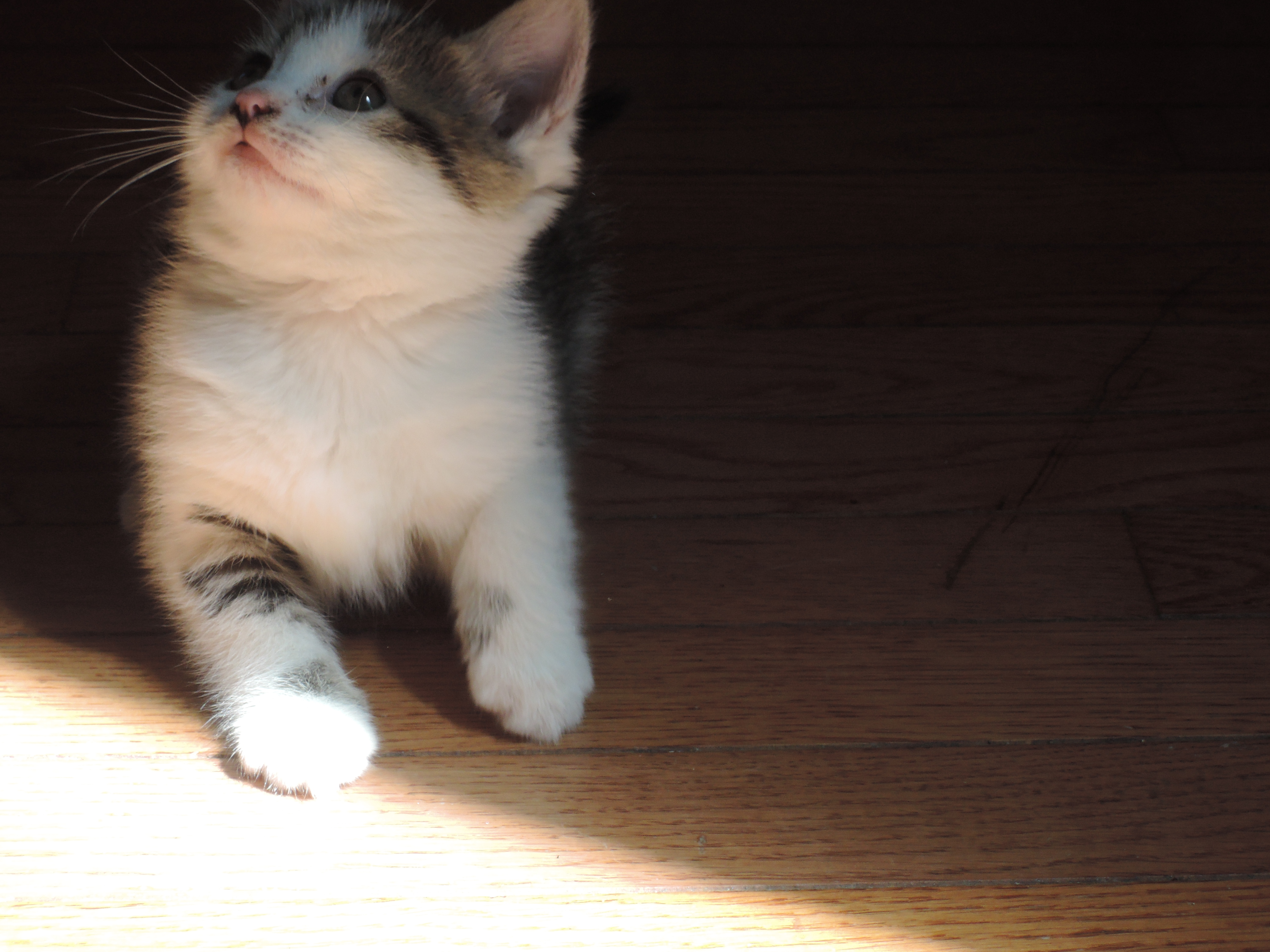 Now that I can have all the food I want, my fur looks great. I’m a tuxedo dude. Even though I like to run an’ play, I keep my feet bright white. I have great whiskers, so I keep ’em clean an’ shiny too. Fact is, I’m drop dead gorgeous. All you have to do is look at me to see that.
