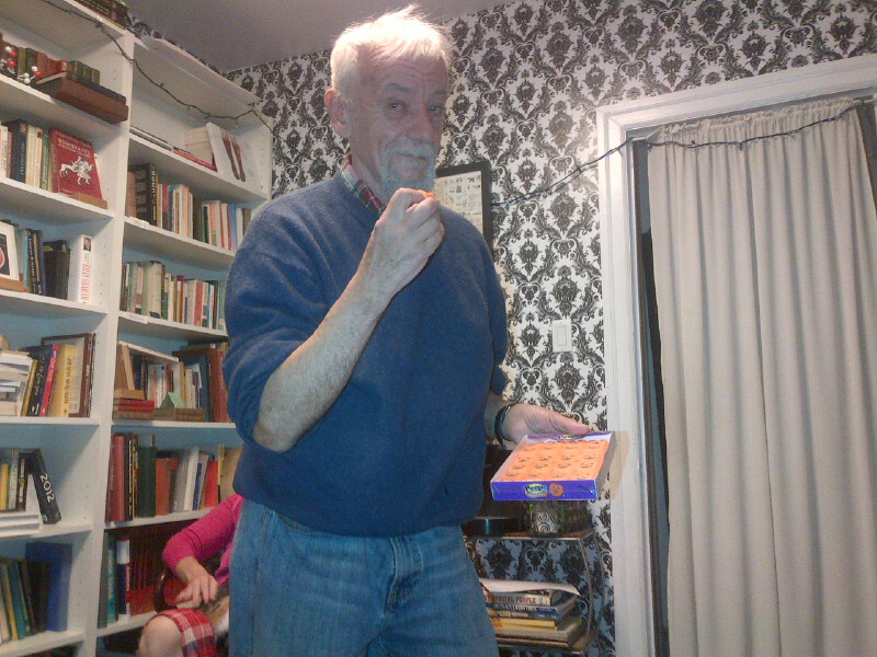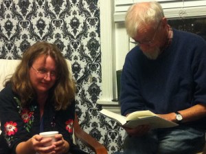 The evening couldn’t have been nicer. On the silly side, Jack discovered “Peeps,” those seasonal marshmallow candies covered in day-glo sugar colors. He found them rather “more-ish” and ate about half the box Suzan brought–which Suzan considered very cute. Guys with Scottish accents can get away with anything.