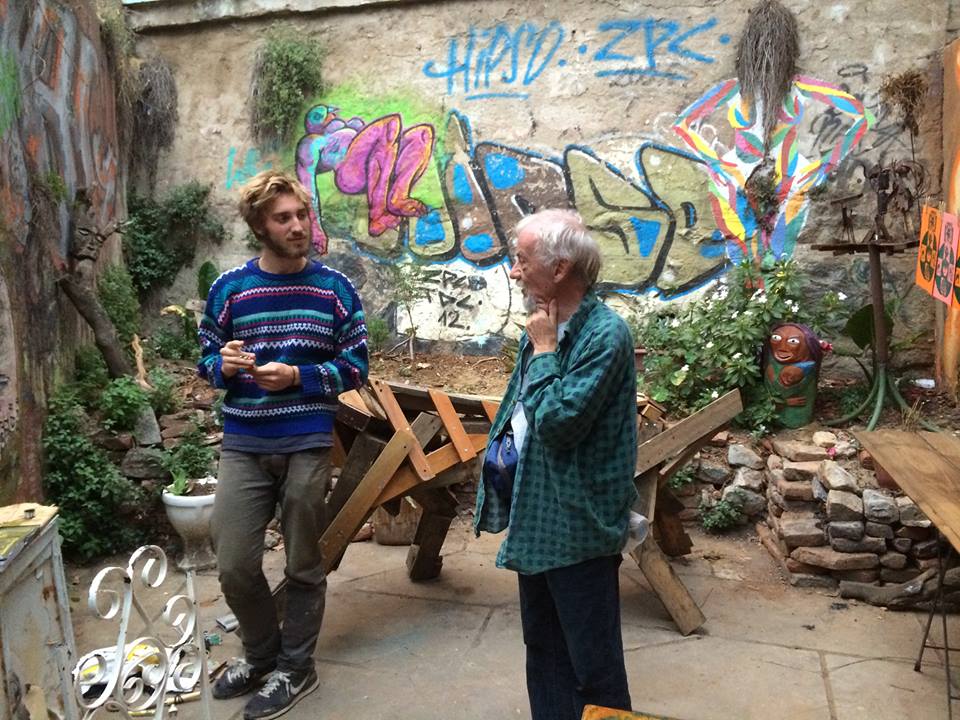 The last one isn’t graffiti only, but also the wooden horse in the yard where we ate pizzas our first night here. The graffiti artist who did this place also did the horse. Please note toilet in lower right of photo. I feel trendy. :] (For those who haven’t seen it, our bookstore has a toilet on the front lawn with flowers growing out of it.)
