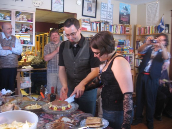 So we’re very much looking forward to what could, if one wanted to wax sentimental, be described as a baptism of love washing over the books and the bookstore’s core people. And we’re excited; weddings are just plain great, especially when couples see them as a community display of what they already live privately. Wes and Rachael belong together, and the bookstore–physical books, Quaker society, and customer community–belongs to them.